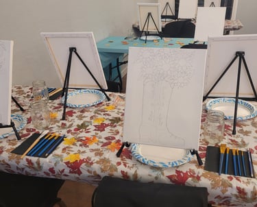 Book personalized paint parties for kids and adults - you pick the artwork, and I show you how to re-create it step by step! I provide all materials, set up, tear down, and instruction!